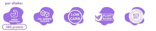 Your Keto-friendly Chocolate High-Protein Shake — 18g plant-based protein, only 0.3g sugar, enriched with MCT's and 17 vitamins & minerals.